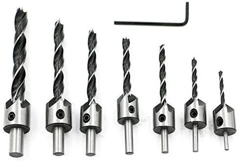 بنط خشابي للثقب و تخويش رأس المسمار - طقم 7 قطع مقاس 3مم:10مم