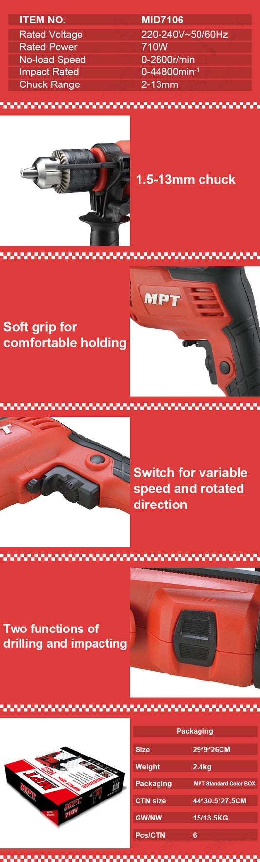 MPT MID7106 13mm 710W Impact Drill